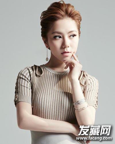 简单的盘发凸显干净立体的五官和淡雅的妆容。露额的发型能够拉长脸型,适合圆脸的女生。