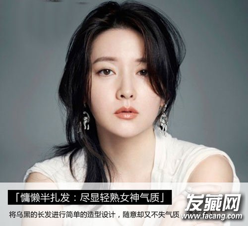 这款看上去极为慵懒随性的韩式蓬松感盘发也是OL们必学的韩国明星发型,简单的将乌黑的长发进行随意的造型设计,微显凌乱感的造型与她精致的五官与完美的脸型相搭更是清新迷人。长刘海具有修颜减龄的效果,女神气质十足。搭配淡雅精致的妆容,李英爱对贤惠温柔美丽作了最精辟的诠释。