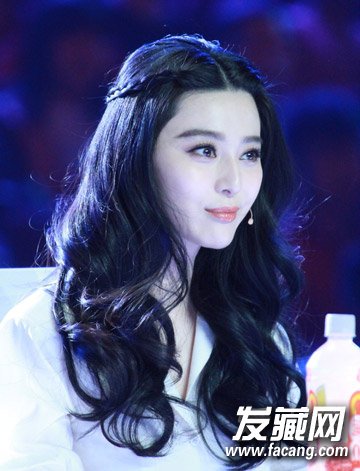 在很多节目中范冰冰都用这款发型,中分编发发型简单好打理,自然黑色发色衬着范爷的白皙肌肤更加甜美迷人。