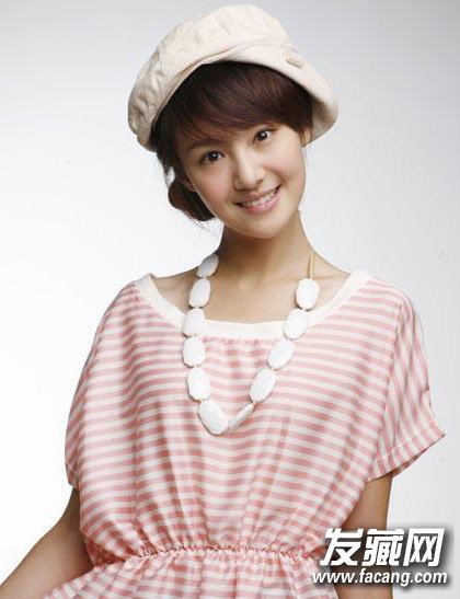 蓬松的斜刘海达到修颜的效果,搭配一顶帽子,虽然青涩却不失甜美清纯。