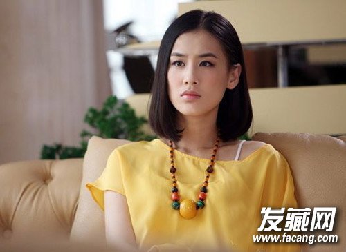 清爽中短发发型,齐肩短直发只在发梢微微内扣,简单清爽,很是像黄圣依这样脸型较瘦的妹子,时尚搭配很显OL风。