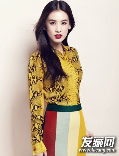 轻熟系写真造型,中分发型算是黄圣依最经典的发型之一了,披肩发配上精致妆容,很显女人味。