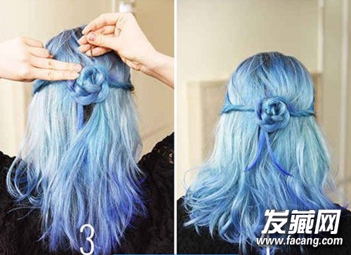 3、将下面的辫子缠绕在上面的半扎发的扎发处,绕成花朵形状,然后固定,这样一款好看公主头编发发型就完成了。