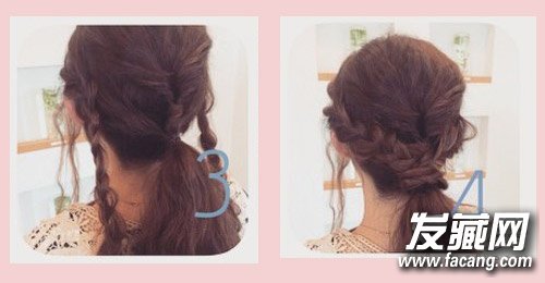 3、右边也同样进行,然后将上面扎好的马尾与下面的头发的一起,扎成一个大的马尾辫,再将两边编好的头发缠绕在扎发处,固定。