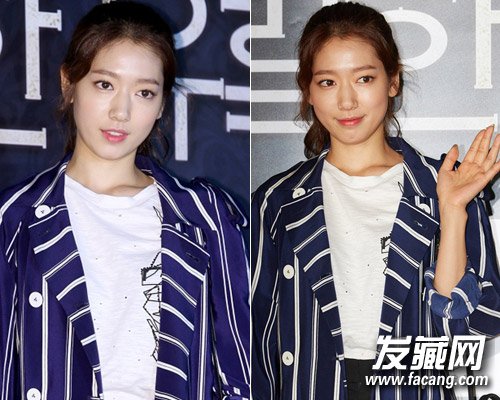 觉得自己额头过宽的,可以参考朴信惠的发型,在额头两侧留出短刘海,并稍稍烫卷,看起来有婴儿般的感觉。