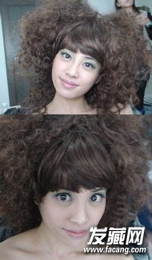这样的爆炸发型很蓬松,虽然不是漂亮的女星,但是总能将歌舞诠释的非常到位。