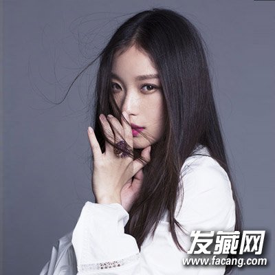 柔顺的棕色直发,妆以红唇,添加神秘感,十分高冷。