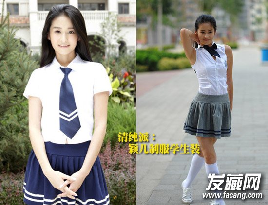 女星颖儿校服照,有点婴儿肥的样子更符合学生时代的样子,披肩发变身气质校花,露额马尾辫发型彰显青春活力。
