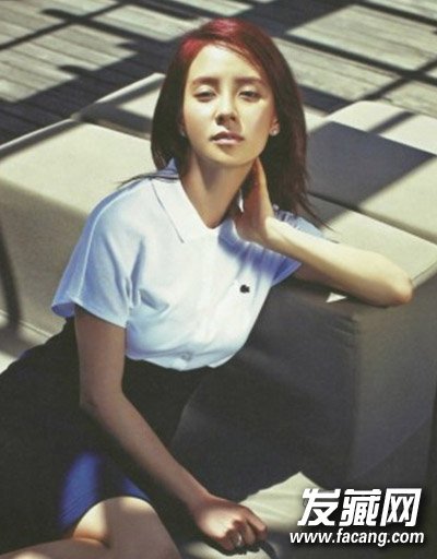 红色的时尚染发搭配蓬松的微卷发型,打造一款灵动唯美的气质披肩发型,有着十足的修颜减龄效果,完美展现宋智孝的精致小脸。