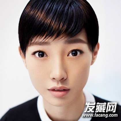 白百合少见的短发,头发多梯度修剪整齐贴紧头皮,在搭配外翘设计让造型更加的有时尚感。