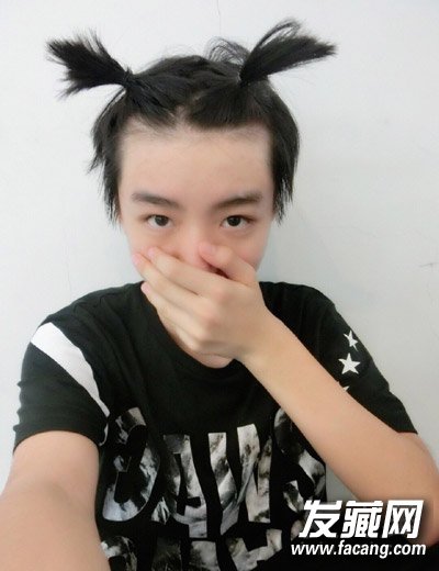 看帅哥自己都不好意思了……没有刘海的样子看起来小了好多。