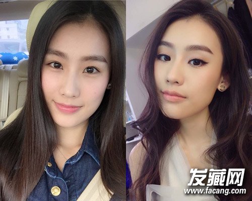 放弃黑长直,走卷发路线的王婉中,看上去更加妩媚性感。没有明显发迹分线的的卷发,沿着脸颊垂下,修饰脸型,再配上浓妆,与之前的清纯形象大相近庭。看来杨总喜欢的女人是需要百变FEEL滴。