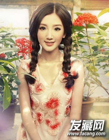 俏皮灵动的双麻花辫编发发型,气质中分很好的修饰了脸型 ,打造出精致的脸型效果来,整个造型给人一种别致的俏皮与时尚感。