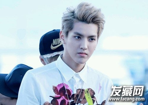 上面的样子再留长一些,就变成了这款蓬松立体的侧花轮头,向中间集中的短发,把他立体的五官呈现出来,白皙的皮肤让它看上去非常的帅气。