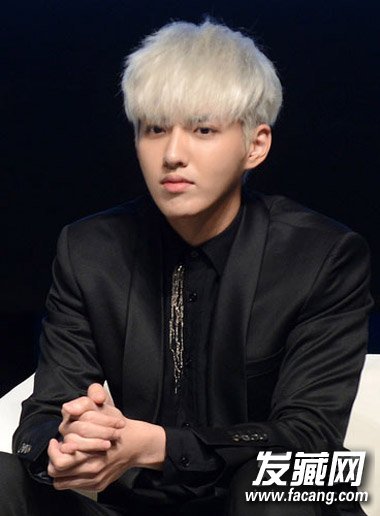 白色很适合五官立体精致的Kris,但是一般男生可能不敢尝试。其实只要配合好脸形与头发造型,白色头发会让你看起来特别有型。