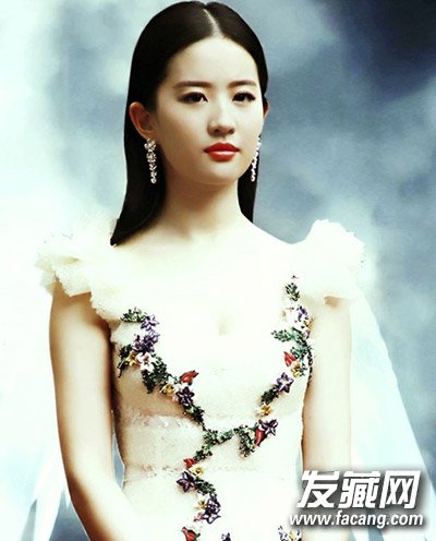 具有名媛气质的披发造型,乌黑自然的中分柔顺发丝,除了端庄之外,更加的清纯动人。