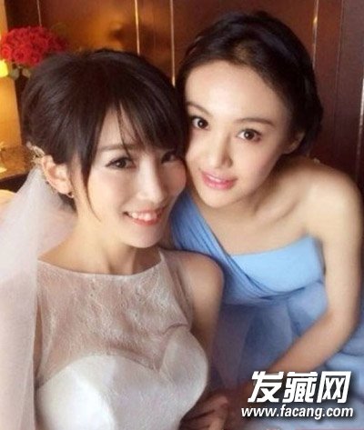 在谢楠和吴京的婚礼中,小仙女郑爽也当了一回伴娘,编发盘发配上蓝色纱裙,仙女范十足。