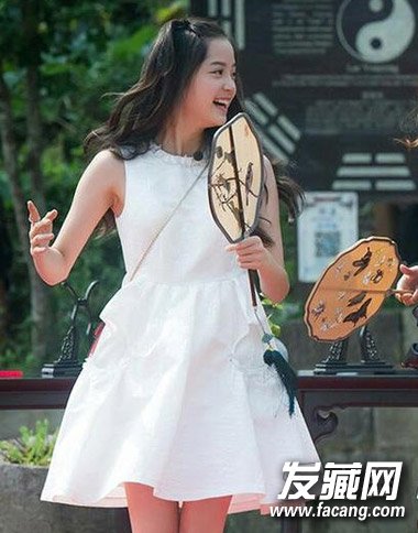 《偶像来了》中少女感十足的扎发发型,长发发梢微卷,再将刘海扎成篇苹果头,垂在一边可爱俏皮。