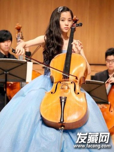 演出时造型,大波浪长卷发弄成大偏分,右边刘海处戴上皇冠发饰,甜美惊艳,蓝色纱裙仙气十足。
