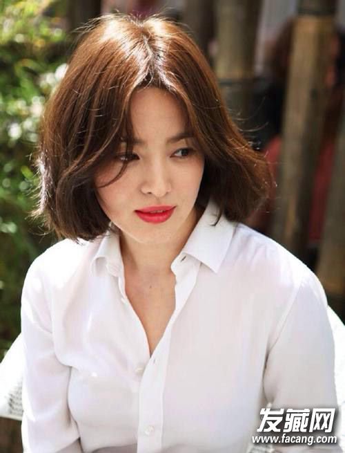 宋慧乔之前也剪过大热的BOB,相比甜美的长发造型,更显大气同样也成熟了许多,前发的弧度优雅修颜,蓬松内扣的短发也更凸显出宋慧乔迷人的天鹅颈。