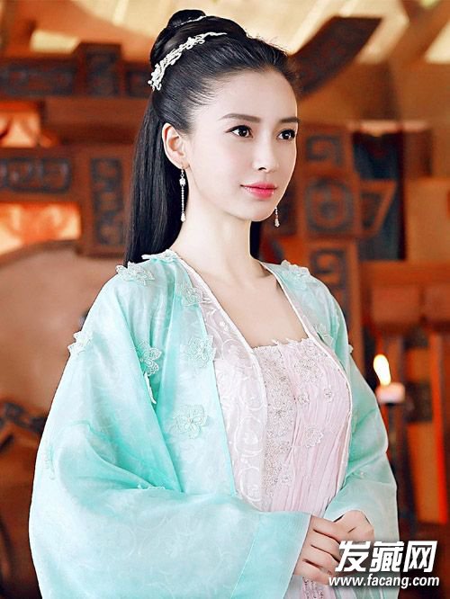 baby单人海报造型,一身淡绿色纱裙衬得气质很是清新脱俗呢,长发在头顶挽出一个包包头,侧面戴上流云图案的发饰很简约不失美感。