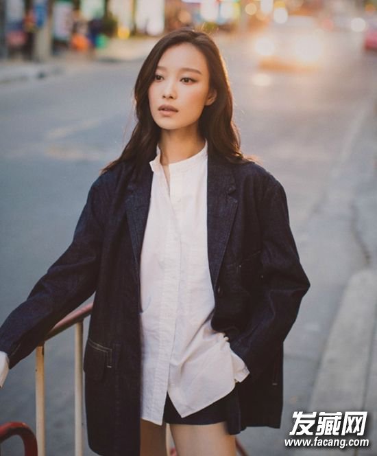 同样去时装周的还有杨蓉,丸子头+牛仔蓝风衣清新养眼。