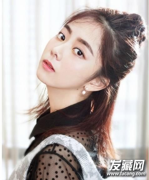 出席较正式场合的时候可以把头发在后面盘起来,在额前和两侧留一些刘海点缀修饰脸型,简洁大方。