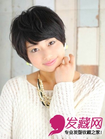 短发长度到达耳朵位置,短短的秀发突显圆润的脸部,刘海修饰额头,瞬间显脸小,黑色的自然发色增添你成熟的女性魅力。