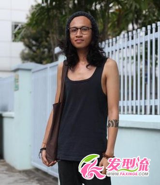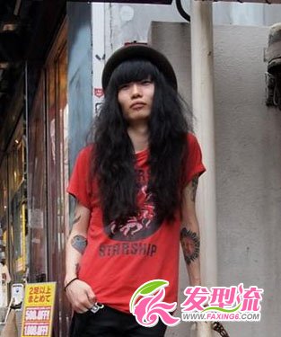 不要怀疑文不对题,也不要怀疑点错了文章,对,这位留着齐刘海长卷发的是男生。蓬松的卷发与齐刘海遮掩了男生的国字脸,小脸发型男生也一样喜爱呢。礼帽搭配长发,还有满手的纹身,真是太酷了!
