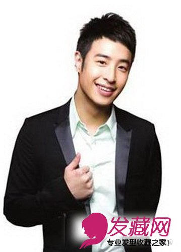 潘玮柏这款短发发型很有修饰长脸的效果,独特的刘海缩短了脸型比例,看上去有点像鹅蛋脸的效果!鬓角干净的修剪与头顶的层次分明形成了鲜明的对比,搭配西装时尚又帅气。