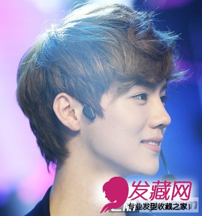小编点评:一款充满青春活力的男士发型,蓬松空气的刘海凸显精致立体的五官。使鹿晗看上去更显阳光开朗。
