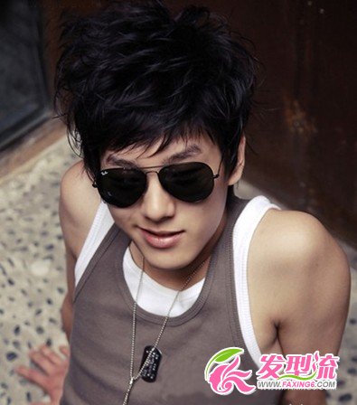 蓬松凌乱的层次感短发,酷劲十足,墨镜的配戴很有型男范儿。