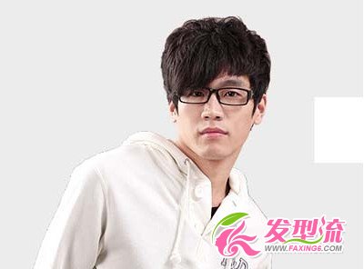 厚重的刘海让这款韩过男士发型变得稳重大气,蓬松空气感发顶拉长了脸型比例,黑框眼镜的搭配打造出知性气息。
