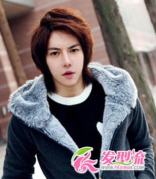 整体发型都以修长的的修剪为重点,发尾与鬓角有助于拉长脸型,斜刘海的蓬高效果则让长脸有所收敛,呈现出精致的五官。喜欢花样美男造型的男生不妨借鉴此款发型,再与流行服饰搭配出韩式范儿。