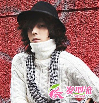 烫发的蓬松感带出前卫的个性,随意的烫发显露出男生的文艺气质,带出几分慵懒感。细致的卷曲弧度搭配黑色礼帽很受欢迎,膨涨的发型衬托出男生菱角分明的五官,高领毛衣遮挡下巴,造型更加时尚。