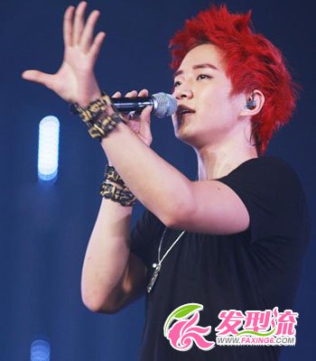 这款发型,非常前卫大胆,走在人群中,绝对是焦点中的焦点,回头率百分百哦!火红的染发颜色,显得热情、奔放,尽显青春活力和年轻气息。很有潮流范儿。头发用发蜡和吹风机抓出造型,有着硬朗的线条美感和强烈的层次感。发丝向上竖起,很有气势,酷帅迷人。