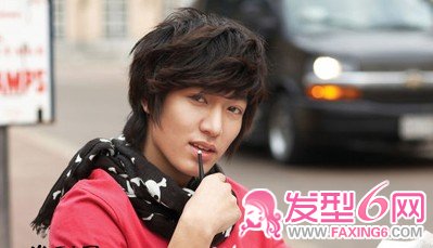 韩式风格的短卷发,既显厚重而又有酷感,长长的鬓发线条,十分的优美,外翻的刘海,更加酷劲十足。再搭配红色T恤很阳光很有一股学生的气息!