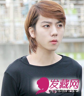 现在越来越多的男生喜欢走中性路线,他们有时候甚至比女生更爱打扮哦!斜刘海拨弄出倾斜的角度,将较长的秀发挽在耳后,以此来让精致的脸型呈现人前。榨色系的染发让白皙的皮肤显得更加通透,彰显出一种中性风路线。