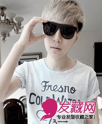 特别亮眼的白金色染发色,成为了这款韩式男发的最大亮点,两侧短短的鬓发,呈现出黑色原发色,头发顶部的白金色,发型有着明显的分层效果,需要特别的染发技巧才能达到。