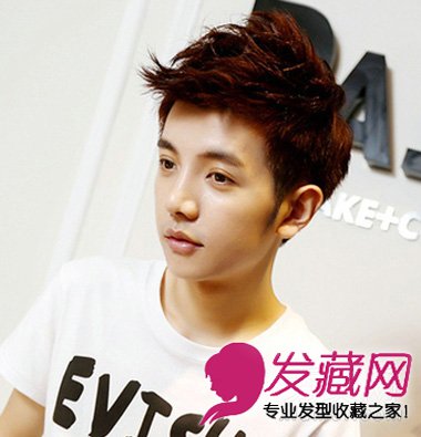 这款发型则适合性格洒脱外向型的活力男生,有点飞机头感觉的层次感长刘海烫发,露出额头清爽舒适,飞扬自在的男生短发。