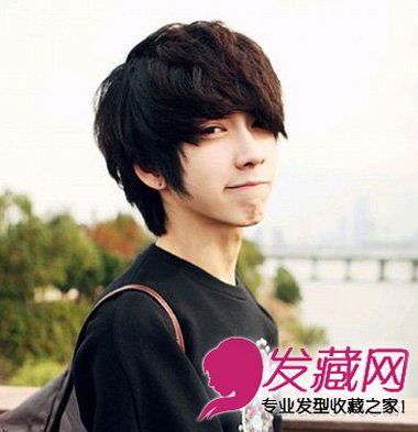 忧郁气质型男造型,浓密的发丝,微微烫蜷的服帖刘海略微遮住眉眼,带出文艺气质,这样的眼神是很能秒杀有文艺情怀的女孩子的。