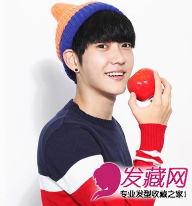 对于头发略显厚重的男孩,把齐刘海搭薄,看上去更加清爽阳光,戴上一顶毛线帽,毛衣穿搭,不失清新感。