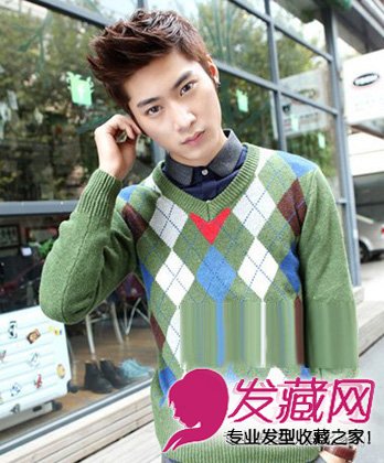 90后潮男大爱的烫发发型,漂黄的染发,显得潮男时尚、大气,厚厚的韩式刘海,可以修饰男生的脸型,同时凸显男生迷人的眼睛,很好看的2013男生发型。
