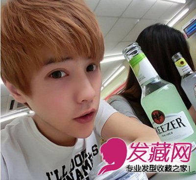好可爱的非主流男生发型,升级版的蘑菇头,金红色的染发,不仅提亮了男生的肌肤,齐刘海又凸显了男生的大眼睛,给男生添加了几分的灵气。