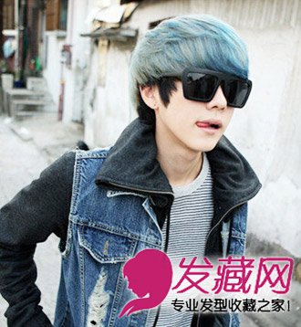 极具酷潮感的花美男发型,齐刘海短发,厚厚的烫发发丝修颜又减龄,保持韩范,而灰色染发配上挑染蓝色又非常狂热吸睛,一件牛仔,墨镜,出街更迷人。