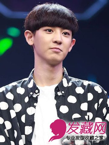 非常暖男气质的一款韩国流行发型,弧度圆润的齐刘海设计修饰出精致的脸型,也是一款非常百搭的潮男发型。