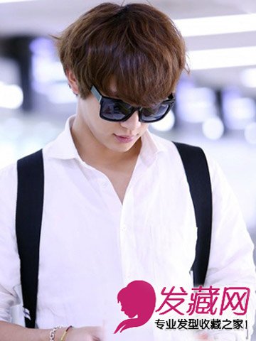很适合对脸型不够满意的型男们打造的一款短发发型,短发烫发层次感丰富,搭配深棕色的挑染发更有时尚的韩流气质。