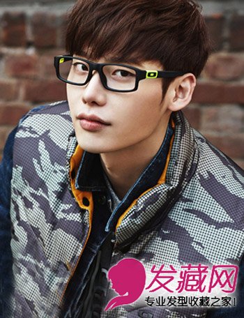 充满冬季暖男气息的造型,穿着花纹款的羽绒服的李钟硕,一副文艺眼镜,气质短发染成栗色发色,帅气斯文。