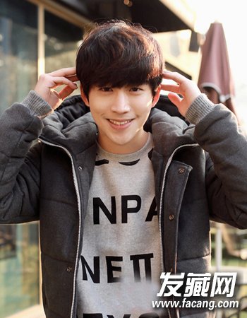 同样是一款很显男生帅气温暖风的韩式男生短发发型,这咱简单厚重的齐刘海造型与清新自然的棕色染发相搭简单时尚还易打理,温暖的笑容更是迷人。