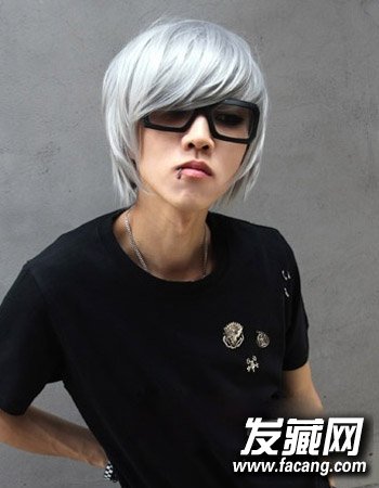 浅灰色的发色与斜 刘海短发勾勒出无比的时尚感来,浅灰色发色显得颇有时尚感,对于男生们来说再适合不过了。